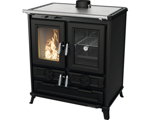 Festbrennstoffherd Thermorossi Klaretta Evo 8,2 kW Easy schwarz mit Backofen rechts und Gusseisen-Kochfeld